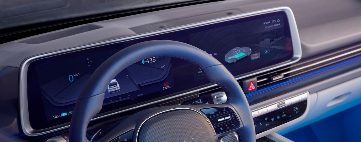 Hyundai designed this model with aerodynamics in mind, and it shows. Its smooth silhouette is not only visually striking but also functional, helping reduce drag and extend driving range. Standard design elements include 18-inch alloy wheels, LED headlights, LED tail lights, and power flush door handles. A rear spoiler, parametric pixel lighting, and available 20-inch alloys give the sedan a sporty yet futuristic edge. The result is a vehicle that turns heads downtown or on the highway, blending elegance with modern EV flair.